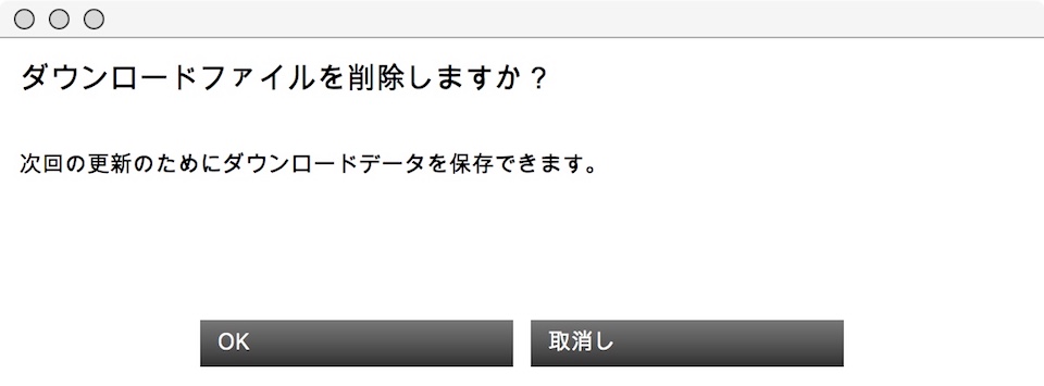 ダウンロードファイルを削除するか否か聞いてきますので迷わずOKします。約70GBのファイルをPC内にストックしておく理由はありません。因みにMacの場合ダウンロードファイルはダウンロードフォルダではなくユーザーのホームディレクトリに“bmw-dlm”というフォルダが作成されその中に保存されていました。ここまでの時間が勿体ないあるいはこの後のインストールで失敗することが心配な方は“bmw-dlm”というフォルダをコピー保存してもいいですね。